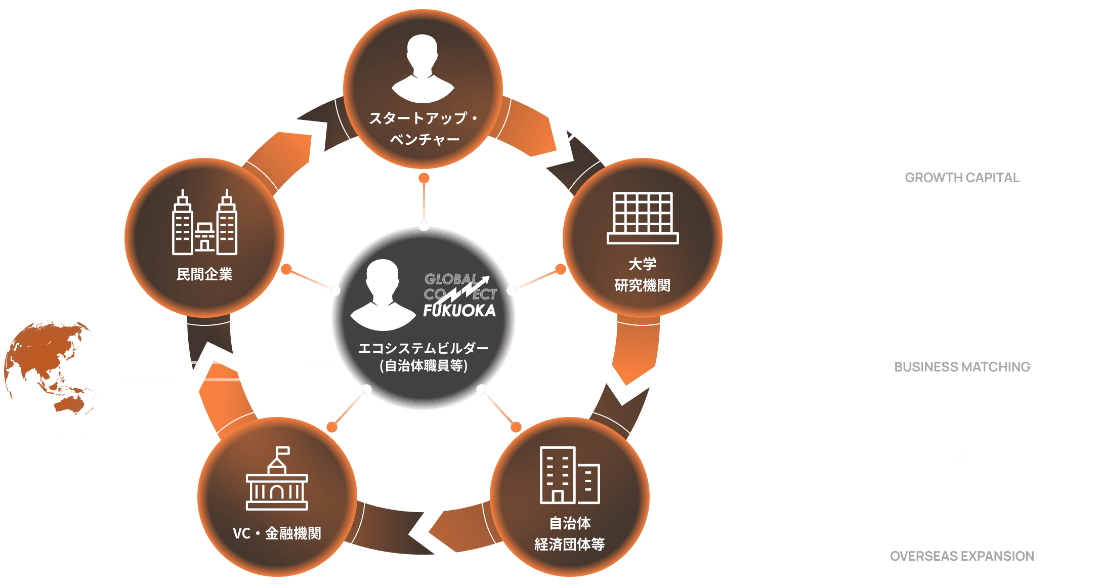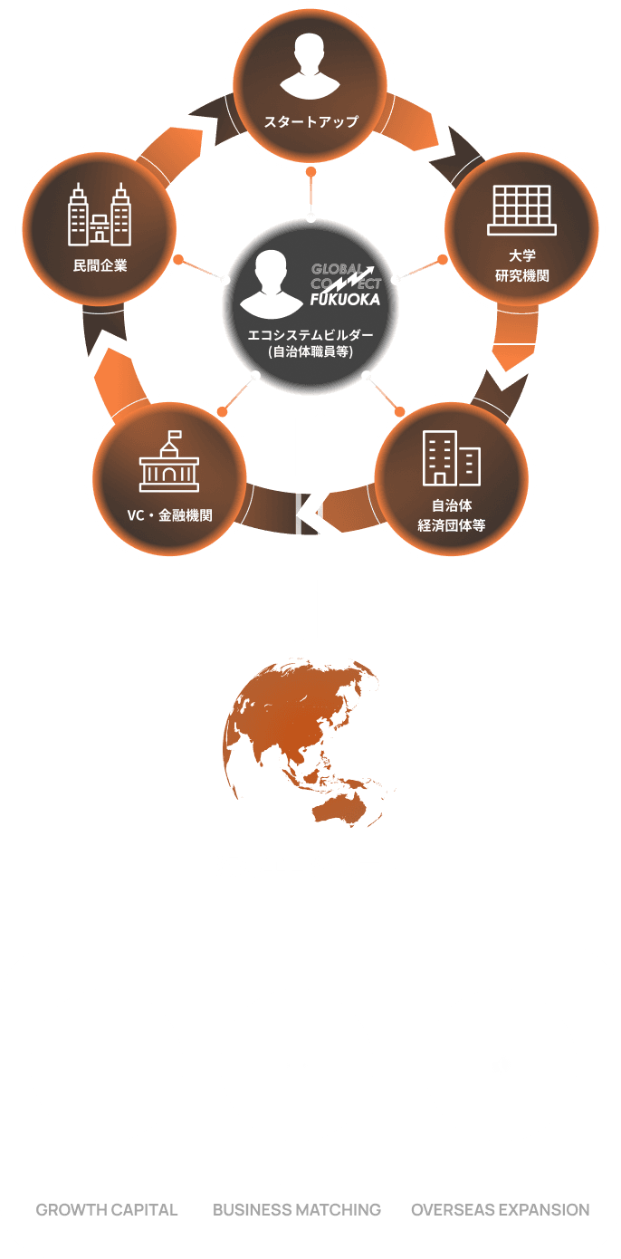 - グローバルコネクト福岡には、エコシステムを形成する